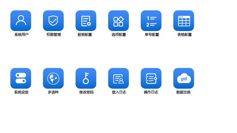 可按需配置用户及权限,用户群组,计数器原则,表格显示方案,多语种,选项,消息模版及以系统配置等功能。