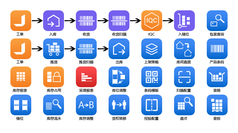 可管理DC,VMI HUB,CKD多种业务(含保税仓),实现料号级,最小包装级管理。集成安卓APP,可配置条码模版,条码扫描,条码校验,实现进出仓PDA校验。